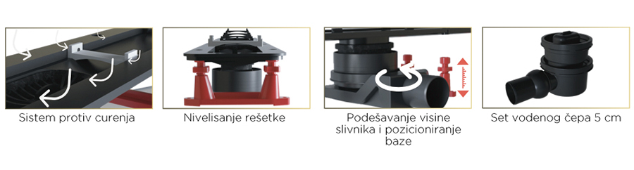 由于支撐格柵的全新設(shè)計和泄露所有冷凝水回漏。粘合劑丁基膠帶捆綁作為系統(tǒng)泄漏的一部分。用于通過選擇一個不同的跳線設(shè)置流平取決于地磚的厚度篦漏極獨特的解決方案。16毫米與30mm通用的解決方案可調(diào)節(jié)高度的底座和旋轉(zhuǎn)360度之間。由于通用的解決方案高度可調(diào)減速DN 110,它可以切割的,EVO LINE可以安裝在新裝修的浴室。62毫米和125毫米之間的高度滿足新大樓的需求。