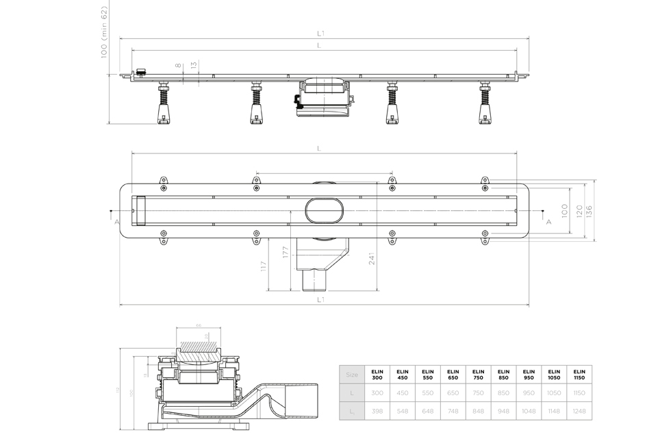 EVO線Inviible是尺寸可供選擇為300mm,為450mm,在550mm650毫米,750毫米,850毫米,950毫米,1050毫米和1150毫米不銹鋼格柵板,讓隱形排水溝。無限的高度調(diào)整到地板和K3類的能力。在這種模式下,你可以在兩個基地之間bitari,取決于它是否是一個新的浴室或修繕。最小高度是62毫米,最大流速為48L /分鐘的項目有助于用25mM水溶液與50mm出口直徑的螺柱的超低旋轉(zhuǎn)基體和主要用于整修。與標(biāo)準(zhǔn)的基本模型具有為125mm和0D EN 1253標(biāo)準(zhǔn)的高度,這是推薦被安裝到新的浴室。它包含在框中需要給客戶安裝的一切。