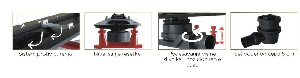 隨著新的設(shè)計,我們kondenyovana支撐格柵和漏水回漏。粘合劑丁基膠帶捆綁作為系統(tǒng)泄漏的一部分。用于通過選擇一個不同的跳線設(shè)置流平取決于地磚的厚度篦漏極獨特的解決方案。16毫米與30mm通用的解決方案可調(diào)節(jié)高度的底座和旋轉(zhuǎn)360度之間。由于通用的解決方案高度可調(diào)減速DN 110,它可以切割的,EVO LINE可以安裝在新裝修的浴室。62毫米和125毫米之間的高度滿足新大樓的需求。