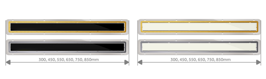 Peštan公司其高級(jí)線玻璃型號(hào)在6個(gè)不同的長(zhǎng)度(300毫米,為450mm,在550mm650毫米,750毫米,850毫米)和4條不同設(shè)計(jì)的格柵(黑色玻璃/不銹鋼,白玻璃/不銹鋼,黑色玻璃/金,白玻璃/金制造)。這是在1,其中在同一個(gè)系統(tǒng)模型可以與黑色或白色的鋼化玻璃或不銹鋼/金色棒中使用的2。高級(jí)型具有DN50毫米水平基座這使我們有機(jī)會(huì)具有高達(dá)48升/分鐘的流速。最低高度只有52毫米這讓我們“優(yōu)質(zhì)玻璃,”沉在世界上最低的與DN50毫米輸出。